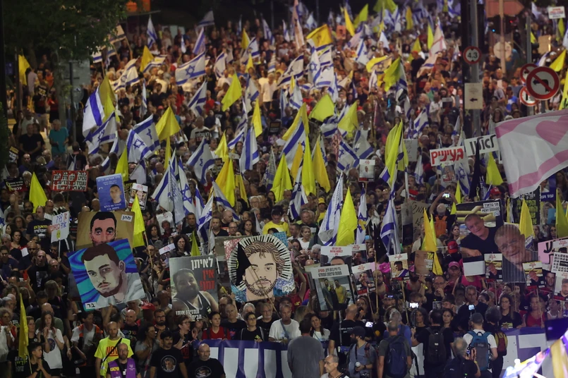Tymczasem rodziny izraelskich zakładników przetrzymywanych przez Hamas w Gazie oraz ich zwolennicy protestują podczas wiecu, wzywając rząd izraelski do podpisania umowy o zwolnieniu zakładników i zaprzestania ofensywy.