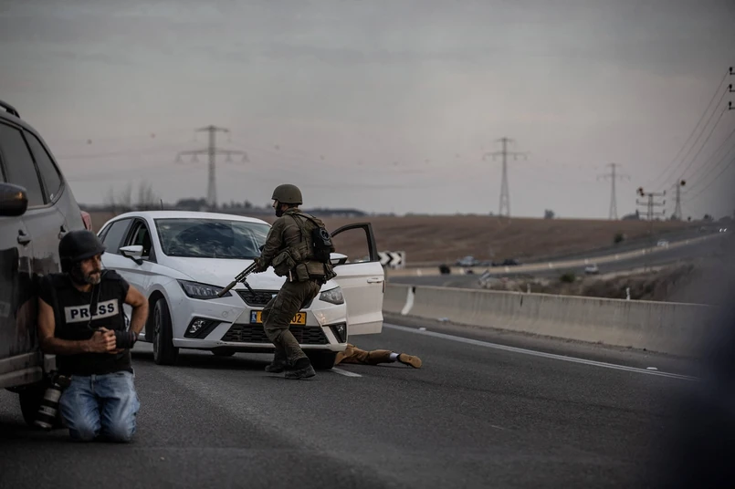 11/15 Siły izraelskie starły się z Palestyńczykami w pobliżu granicy Izrael-Gaza w Sderot w Izraelu, 7 października 2023 r. PAP/Abaca