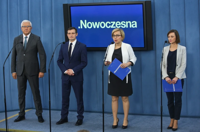 - To, co wydarzyło się przez ostatni rok, jest skandalem. Ustawy pisane na kolanie, które wymagają poprawek. Nawet prezydent zwraca na to uwagę. To wynika z tego, że posłowie PiS w ogóle nie słuchają uwag opozycji. Ustawy są uchwalane nocą i w sposób chaotyczny. To pokazuje niekompetencję - powiedziała Joanna Augustynowska z Nowoczesnej. Posłowie tej partii zorganizowali w Sejmie konferencję prasową podsumowującą rok, który upłynął od zwycięstwa Prawa i Sprawiedliwości w wyborach parlamentarnych. Paulina Hennig-Kloska zarzuciła rządowi "wprowadzenie obszernych programów społecznych bez bezpiecznego źródła finansowania". - To musi doprowadzić od obciążenia Polaków podatkami. PiS będzie musiał wyciągać z ich kieszeni miliardy złotych - podkreśliła.